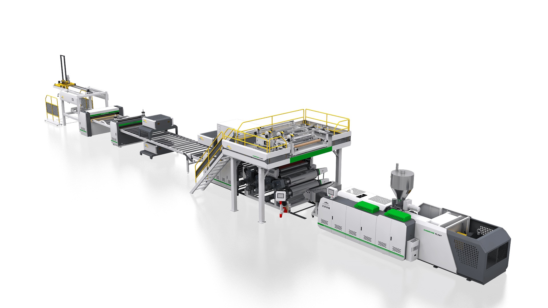 | Kingshine developed the High Capacity Super Conical SPC Floor Production Line with online ElR technology, which has the following advantages compared with the traditional conical twin screw SPC floor production line: 1. The output is larger, with a daily output of 60 tons. 2. Lower energy consumption, energy consumption per unit output is 70% of traditional conical twin screw extrusion., 3. The screw has a long service life, which is twice the service life of the traditional conical twin screw. 4. Kingshine special five-roller calender improves the peeling strength of SPC floor, making the embossing more realistic. 5. The online EIR technology with high accuracy and automation. |