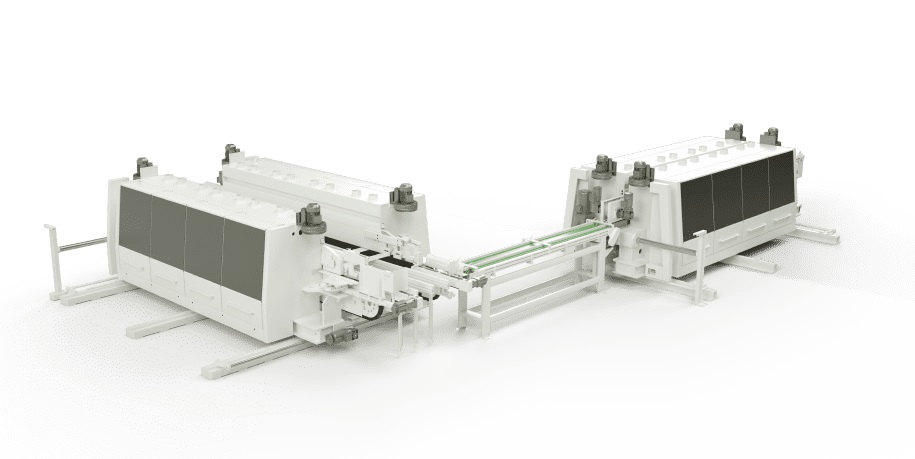 | Angle double end tenoner, through the double end tenoner principle of fishbone floor transverse end slotting. Can SPC floor, engineered floor, laminate floor and other materials for custom processing. |