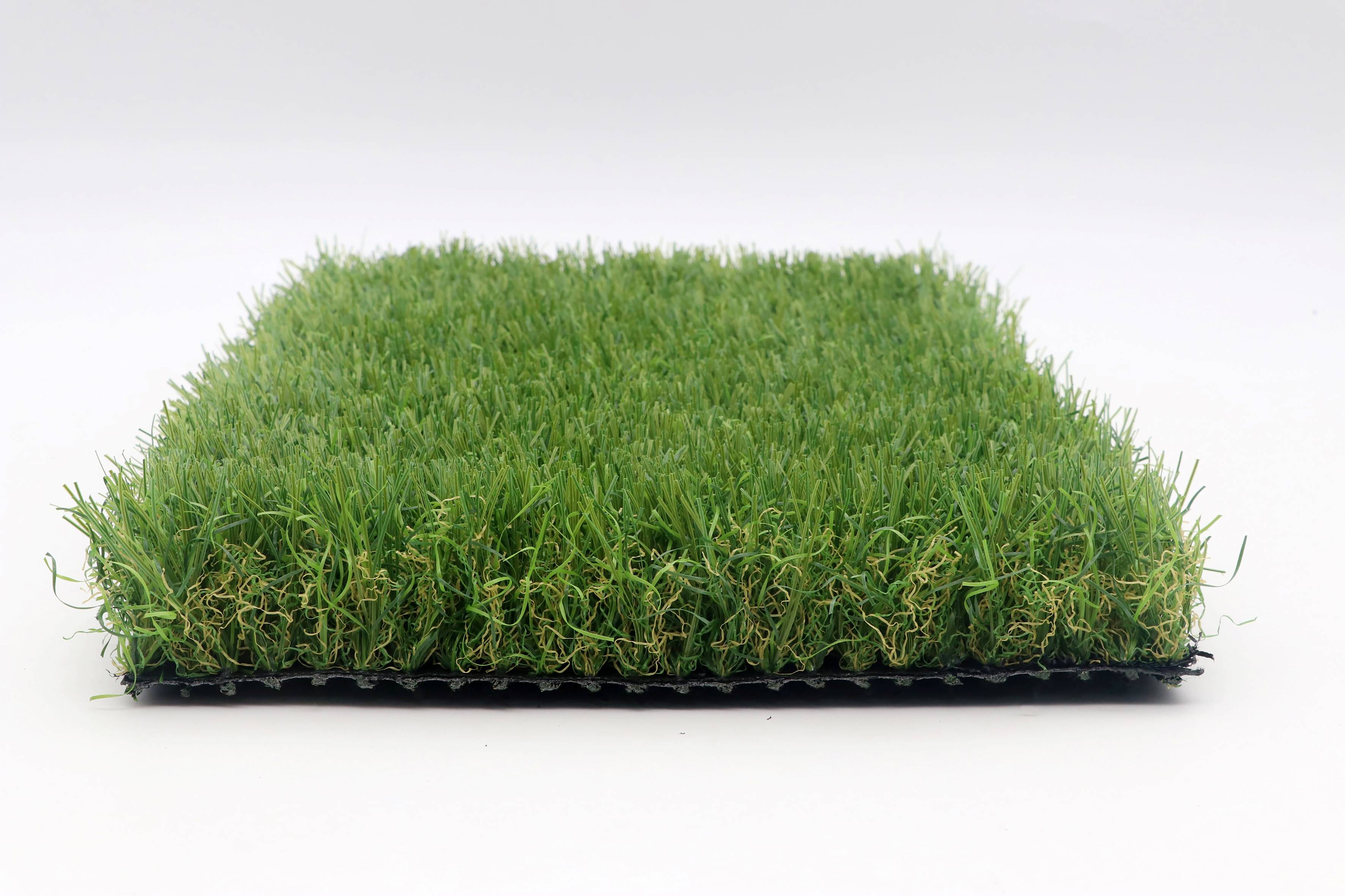 | This Landscaping grass is our new multi directional grass in 2022, the yarn is very natural, good resilience and beautiful colors in 4 tones mixture of greens and a green & brown curly roots, there are 6F KDK curly and 12Fcurly give very big support for the straight yarn, this makes the grass look in non direction and very natural. |