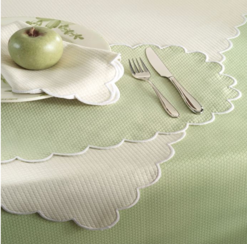 If you prefer a cleaner look without dramatic overhang, Williams Sonoma offers a tablecloth worth considering. The bordered edge adds an elegant touch, showcasing meticulous attention to detail.