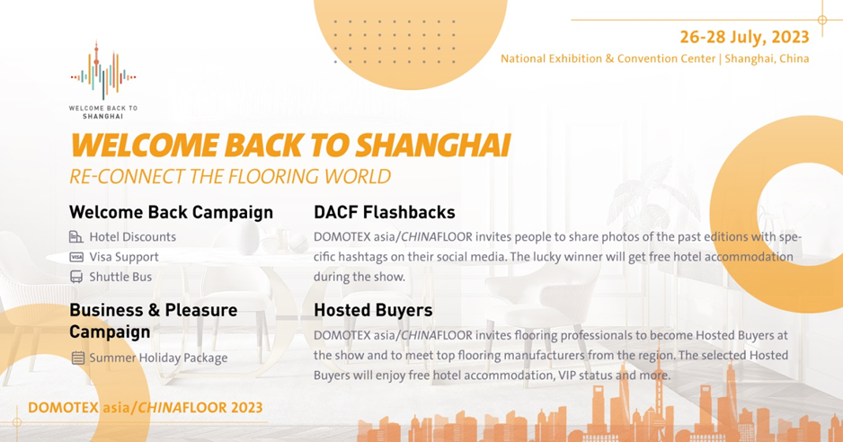 DOMOTEX asia/CHINAFLOOR (26-28th July 2023 in Shanghai) is the largest international flooring show in the Asia-Pacific region. VNU Exhibitions Asia, Build Your Dream and Hannover Milano Fairs Shanghai, a subsidiary of Deutsche Messe, jointly organize the show.