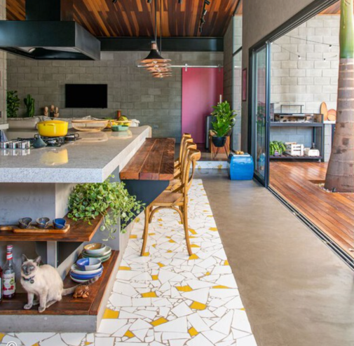 The integration of different flooring types isn't limited to indoor spaces; it can also enhance outdoor areas like terraces. When applying this approach outdoors, it's crucial to consider factors like water drainage to prevent flooding during rainfall.